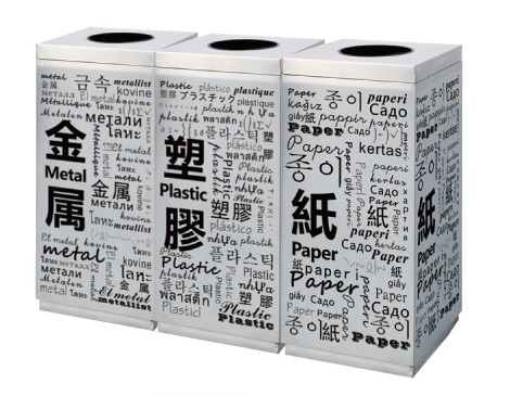 Sand Steel Three-In-One Environmental Protection Recycling Bin - Multi-Language Pattern